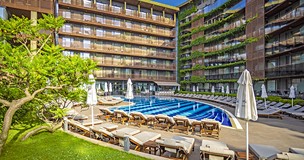 *****Luxusní hotel v moderním stylu se nachází u starobylého městečka Nesebar, kde můžete navštívit spoustu restaurací a barů. Zavítat lze i do velmi známého a oblíbeného aquaparku Nessebar, který uspokojí každého, nejvíce mládež a rodiny s dětmi.