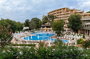****Moderně vybavený hotelový komplex se nachází v zahradě, v jihozápadní části střediska Zlaté písky, ve vzdálenosti asi 400 metrů od rušného centra a cca 30 kilometrů od letiště ve Varně. Hotel nabízí ideální prostředí ke strávení odpočinkové dovolené s relaxací v překrásné přírodě a zeleni. Celá oblast je obklopena národním parkem s hustými lesy. Kromě klientů, vyhledávajících klidnou dovolenou, si zde na své jistě přijdou i milovníci společenského života. Široká písčitá pláž s vyhlášenou promenádou je od hotelu vzdálená 450 metrů a je přístupná svažující se cestou zčásti po schodech. K dopravě lze snadno využít i místního turistického vláčku. Na promenádě naleznete množství obchodů, restaurací, barů, atrakcí a dalších možností zábavy.