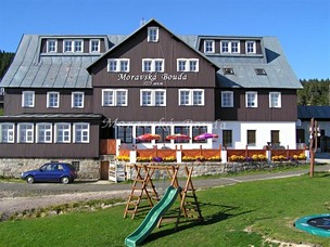 Rodinné ubytování na vrcholcích Krkonoš s lyžařskými vleky přímo u objektu.Moravská bouda je jedna z nejhezčích a nejzachovalejších hřebenových horských boud. Jako jedna z mála si zachovala svou architektonickou autentičnost a historii doby vzniku, není zničena různými přestavbami v pohnuté době. Její součástí zůstává prostor restaurace s vyřezávaným lustrem z roku 1932 s motivy venkovského života. I rekonstrukce celého objektu byla provedena citlivě s ohledem na jeho historii.V roce 1982 byla Moravská bouda jednou z filmových lokací při natáčení filmové komedie Sněženky a machři – natáčely se zde některé interiérové scény.