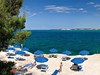Asi 3 km dlouhá přírodní, oblázková, místy betonová plata a travnatá pláž přibližně 100 - 200 m od apartmánů. Oddělená pláž pro psy. V blízkosti je nudistická pláž. Pláže a čistota moře byly oceněny Modrou vlajkou.Možnost půjčení lehátek a slunečníků za poplatek.