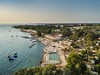 Oblázkové a kamenité pláže s betonovými platy, oceněné Modrou vlajkou — čistota moře a kvalita pláže jsou velmi dobré.Pláž je vzdálena 50-400 m od mobilních domků.