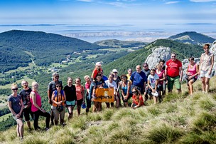Přitažlivé skalní město Dabarski kukovi v pohoří Velebit. A: Výstup na výhledové Ljubičko Brdo (1326 m), zpět lze okruhem (5 hod, ↑450 m, ↓450 m). B: Možnost přidat si náročnější výstupy s lehkým lezením na skalnaté vrcholky – „kuky“.