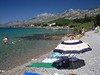 Pěkná pláž s pozvolným vstupem do vody je vzdálena cca 80 m od studií. Pobřeží v letovisku je rozmanité (oblázky – hrubý písek – betonové plotny), pláže jsou místy rušnější, jinde liduprázdné (krásná několikakilometrová hlavní pláž se zříceninou na jižním okraji letoviska je vzdálena cca 10 min chůze).