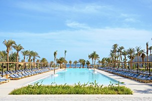 *****Luxusní pětihvězdičkový komplex se nachází přímo u rozlehlé písečné pláže v severní části Hurghady, jen pár kilometrů od centra města. Nabízí stylově zařízené pokoje, suity a chaletové jednotky s výhledem na Rudé moře nebo do tropických zahrad. Hosté mohou relaxovat u dvou venkovních bazénů, včetně dětského, a využívat soukromé plážové zóny vybavené lehátky, slunečníky a palmami. Stravování formou All Inclusive zahrnuje hlavní bufet, několik à la carte restaurací (například sushi, rybí a gril), a pití v lobby i plážových barech. Resort nabízí wellness centrum s masážemi, sauna a fitness, dále animační programy, dětský klub a řadu vodních i potápěčských aktivit. Díky kombinaci komfortního ubytování, bohatého zázemí a přímého přístupu k moři je Serry Beach ideální volbou pro relaxační rodinnou i párovou dovolenou na Rudém moři.