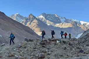 Prudké stoupání do základního tábora pod průsmykem Pin Parvati (4900 m). (9 hod, ↑800 m)