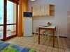 Type B-4 (bilo4): obývací pokoj s kuchyňským koutem a gaučem pro dvě osoby, ložnice s manželským lůžkem, koupelna a balkon.