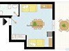 Type B4 (bilo4): obývací místnost s kuchyňským koutem, gaučem pro 1-2 osoby (typ šuplík), ložnice s dvoulůžkem, koupelna a prostorný balkon.