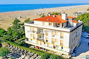 **Appartamenti Villa Mecchia leží hned u písečné pláže v centru letoviska Bibione Spiaggia. Budova má 16 apartmánů, většina z nich je s výhledem na moře.