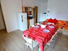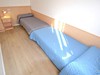 Type D (quadri7): obývací místnost s kuchyňským koutem a rozkládacím gaučem, ložnice, dva pokoje se dvěma jednolůžky, koupelna, terasa.