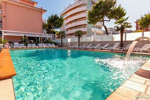 **Hotel D'annunzio se nachází v západní části Lido di Jesolo, přibližně 150 metrů od písečné pláže a jen pár kroků od hlavní nákupní třídy. K dispozici je recepce, výtah, Wi-Fi připojení, bar, restaurace, slunná terasa s lehátky, vířivka, bazén, půjčovna kol a parkoviště dle dostupnosti. Plážový servis není zahrnutý v ceně (lze jej zakoupit na místě). Klimatizace je za poplatek 12 €/den (nutné vyžádat předem).