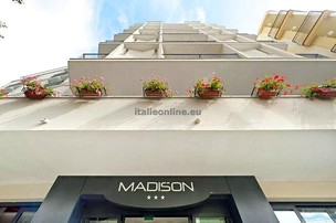 **Hotel Madison se nachází přibližně 200 m od písečné pláže v městě Gabicce Mare. Pro hosty je k dispozici vstupní hala a recepce, Wi-Fi, klimatizace, půjčovna kol dle dostupnosti, parkoviště za poplatek cca 5 €/den nebo garáže 10 €/den, restaurace a bar, na pláži miniclub pro děti (15/06 - 31/08), dětské hřiště, animační program v italštině a plážový servis od 4. řady dál (1 slunečník a 2 lehátka/pokoj, 01/06 - 13/09).