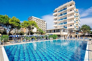 **Hotel Palace se nachází ve městě Bibione, přibližně půl minuty chůze od písečné pláže. Pro hosty je k dispozici recepce, výtah, bazén, dětský bazén, bar s terasou, zahrada s dětským hřištěm, parkoviště dle dostupnosti, plážový servis (1 slunečník a 2 lehátka), pro děti od 3 do 10 let je pak od června do září otevřený miniklub, stolní tenis a na recepci lze domluvit půjčení kol.