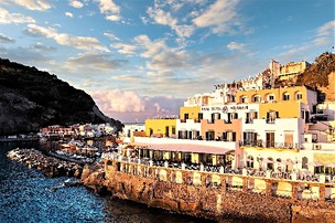 Na útesu v zálivu Maronti na konci pěší zóny městečka Sant’Angelo s krásnými výhledy na moře a ostrov Capri. Součást hotelového resortu Miramare & Apollon Club Sea Resort. Centrum s nákupními možnostmi, bary a restauracemi cca 100 m.