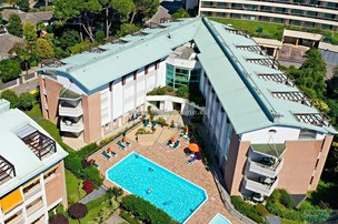** +Elegantní, kompletně oplocená rezidence se nachází cca 150 m od pláže, od které je oddělena piniovým hájem. Pláž, která nabízí veškeré služby je dosažitelná po chodníku. Nákupní centrum je vzdálené od rezidence cca 150 m. V podzemí residence jsou k dispozici garáže a pračky (za poplatek), všechna patra jsou dostupná výtahem. Kromě toho klienti mohou využívat bazén pro dospělé a děti, terasu a Wi-Fi u bazénu (za poplatek).