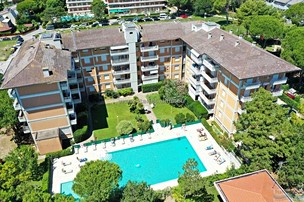 * +Residence Gardenia - pětipatrová budova s bazénem se nachází v klidné části Lignano Riviera, v blízkosti přístavu Marina UNO, pouhých 350 m od písečné pláže a cca 300 m od nákupní zóny. Pro hosty je zde výtah, recepce a parkoviště (do vyčerpání míst). Apartmány mají klimatizaci, TV a mikrovlnnou troubu, od poloviny května do poloviny září cena zahrnuje také plážový servis ke každému apartmánu.