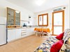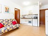 Type B2/balcone (bilo4): obývací pokoj s rozkládací pohovkou pro dvě osoby a kuchyňským koutem, ložnice s manželskou postelí, sociální zařízení, TV, klimatizace, mikrovlnná trouba, pračka a balkon.