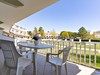Type C2/7 pool view (trilo7): Obývací pokoj s kuchyňským koutem a rozkládací pohovkou pro dvě osoby, ložnice s manželskou postelí, pokoj s palandou a samostatnou postelí, koupelna, TV, klimatizace a balkon s výhledem na bazén.