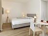 Confort C (bilo4): Apartmán pro čtyři osoby (35 m 2) - obývací pokoj s kuchyňským koutem a rozkládací pohovkou, ložnice, koupelna, mikrovlnná trouba, kávovar, lednice, myčka nádobí, pračka, klimatizace, Wi-Fi připojení, TV a trezor.