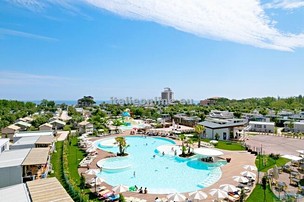 **Romagna Family Resort leží cca 1,5 km od centra Riccione, přímo u pobřežní promenády a od písečné pláže jej dělí pouze silnice, pod kterou vede praktický podchod. Pro hosty je k dispozici recepce, restaurace, bar, pizzerie, Wi-Fi ve společných prostorách zdarma, minimarket, sportovní a dětské hřiště, animace od půlky května do půlky září, prádelna na mince, půjčovna kol a parkoviště. Těšit se můžete na relaxační bazén s barem, bazén s umělou pláží a vodními atrakcemi, venkovní vířivku a sluneční terasu (slunečníky a lehátka za poplatek). Elektrický gril povolen.