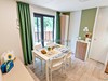 Lodge Superior Family (quadri6): Mobilhome pro 6 osob (33 m2) - obývací pokoj s kuchyňským koutem a pohovkou, dvoulůžková ložnice, dva pokoje každý se dvěma samostatnými lůžky, dvě koupelny, topení, lednice a veranda se stolem a židlemi. Pobyt se psem povolen.