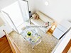 B6 Mezzanino (bilo6): Apartmán pro 6 osob s mezipatrem - obývací pokoj s dvoulůžkem + jednolůžkem (některé s palandou v obýváku nebo v ložnici), ložnice s dvoulůžkem a přistýlkou, kuchyňský kout, koupelna, TV, Wi-Fi připojení, lednice, mikrovlnná trouba, fén a klimatizace.