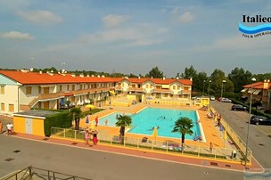 **Nový residenční komplex s bazénem (v provozu přibližně od 3/6 do 3/9, podle počasí) se nachází v klidné části letoviska, cca 400 m od centra a necelých 900 m od pláže. V sezóně jezdí na pláž a zpět turistický vláček (přibližně každou hodinu, pondělí - sobota cca od 9 do 12.30 a od 16 do 19 hod), na místě lze zakoupit předplatné na celý týden za cca 25 €/týden pro celou rodinu. Apartmány jsou moderně zařízeny, mají vyhrazené parkovací stání. U bazénu lze využívat lehátka za poplatek. Na vyžádání při rezervaci možnost objednání apartmánu s klimatizací (příplatek 35 €/týden) a Wi-Fi (poplatek 25 €/týden). Poplatek za dětskou postýlku je 18€. Na vyžádání a za poplatek 35€/ týden je možný pobyt s pejskem.