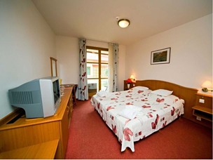 UbytováníHotel má 3 patra a celkem 24 klimatizovaných komfortně zařízených pokojů. Součástí pokojů v přízemí jsou terasy, v prvním patře balkony a v druhém patře se nachází podkrovní pokoje. Na terasách a balkónech najdete dřevěný nábytek. Každý pokoj je vybaven telefonem, TV, mini barem, trezorem a WIFI. V koupelně je sprchový kout a fén na vlasy. K dispozici je také župan, ručníky a plážová osuška. Pokoje se nedají vybavit přistýlkou, proto je doporučujeme párům.Hotelové wellness službySoučástí hotelu je menší wellness centrum, které hosté můžou využívat 24 hodin denně. Najdete zde finskou saunu, vířivku, infrakabinu, solárium, kardio posilovnu a bar.Termální lázně s léčivou vodouHosté mohu zdarma využívat vedlejší termální lázně s léčivou vodou bohatou na vápník, magnézium, vodík a uhličitany. Teplota léčivé vody u pramene je 49°C. V bazénech je příjemná teplota 34-36°C. Ve venkovním areálů je celoročně v provozu sedací a plavecký bazén s léčivou vodu. V části krytých lázní se nachází trakce v teplovodním bazénu, bazén s léčivou vodou s vodními tryskami na krk nebo kruhový bazén s teplotou vody 34-36°C..