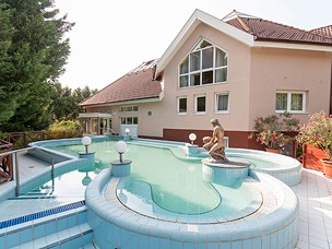 Zájemci si mohou přikoupit program All Inclusive, který zahrnuje bufetovou snídani (od 7:30 do 10:00), bufetový oběd (od 12:00 do 14:00), odpolední svačinku – kávu, čaj, moučník a ovoce (od 16:00 do 17:00) a bufetovou večeři s živou hudbou (od 18:00 do 21:00). Od 11:00 do 22:00 je pak neomezená konzumace nealkoholických nápojů (minerální vody, Pepsi, Coca Cola, ovocné džusy) čaje, kávy, domácího vína, čepovaného piva Borsodi a domácí pálenky.Wellness centrumBěhem své návštěvy můžete relaxovat ve vnitřních a venkovních zážitkových bazénech s termální vodou. Termální voda s teplotou 65 °C vyvěrá z hloubky 2200 m. Je alkalicko-uhlovodíkového charakteru s obsahem jodidových iontů. Je vhodná na léčení pohybového ústrojí, revmatických a zánětlivých potíží. Wellness centrum se může pochlubit dlouhou otevírací dobou od 7:00 do 23:00. Na osvěžující nápoje nebo malé občerstvení láká wellness bar. V poschodí nad bazénem se nachází fitness centrum a odpočinkové prostory s krásnými výhledy na termální bazény a hotelovou zahradu. Součástí wellness nabídky je dále solárium, panoramatická finská sauna s výhledy do zahrady a infračervená kabina.Sport a rekreaceMilovníkům rekreace a autentických zážitků doporučujeme projížďky na koňském spřežení, projížďky na motorovém člunu nebo vyhlídkové plavby po Dunaji včetně návštěvy vodního díla Gabčíkovo. V hotelu si můžete zdarma zapůjčit kolo a projet se po největším maďarském ostrově Szigetkoz, zahrát si kulečník vedle Orchidea baru, stolní tenis a badminton v hotelové zahradě nebo tenis na kurtech vzdálených pouhých 50 metrů od hotelu. V okolí je taky možnost rybaření a jízdy na koni.ZvířataV hotelu je možné se ubytovat s malým mazlíčkem. Za pobyt se zvířetem se účtuje poplatek ve výši 3 000 HUF za nocParkováníSvé vozidlo si můžete zdarma zaparkovat na parkovišti před hotelem nebo za poplatek v hotelových garážích. Tipy na výletyZa návštěvu určitě stojí místní pekárna s možností komentované prohlídky, moderní vědecko-technologický park Futura rozdělený do čtyřech částí – vody, země, vzduchu a ohně nebo Dodó farma v Dunaremete (3 km od hotelu), která je domovem divokých zvířat včetně jelenů, muflonů, divokých prasat, daňků a divokých ptáků včetně bažantů. Součástí farmy je i dětské zoo a hřiště.Lázně LipotPoblíž hotelu se nacházejí veřejné lázně Lipót nosící název „Perla Meziostroví“. Z technického i estetického hlediska patří mezi nejmodernější lázně v Maďarsku. Leží v klidném prostředí na ploše téměř 10 ha. Součástí lázní jsou dva léčebné bazény, plavecký bazén s vyznačenou plaveckou dráhou a trampolínou, dětské bazénky, divoká řeka, vířivka zážitkový bazén s masážními prvky, vodní atrakce včetně vlnobití, vodního parku a tobogánů, sauna postavená na ostrůvku a připomínající vodní mlýn a nabídka masáží. V lázních je v sezoně k dispozici bufet, pizzerie, vodní bar a kavárna s cukrárnou.Sport v okolíCyklistika, Jogging, Jízda na člunech, Aqua park, Rybolov, Běžecké trasy, Dětské hřiště, Tenisové kurty, Jízda na koniVybaveníBar, Parkoviště, Vinárna, Solárium, Masáže, Zahrada, Sauna - Finská, Business zone, Fakultativní výlety, Dětský koutek, Vinný sklep, Recepce, Kavárna, Restaurace, Bazén venkovní s termální vodou, Bazén krytý s termální vodou, Výtah, Půjčovna kol, Terasa