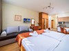 možno snídaně , večeře nebo polopenze na vyžádání v CKTyp ubytováníHotel nabízí apartmány pro 2 osoby (1 místnost, typu garsonky), pro 4 osoby (1 ložnice, obývací pokoj se 2 lůžky) - apartmán a cena na vyžádání,oba typy apartmánu mají kuchyňský kout (ledničku, vařič), TV a koupelnu. Cena zahrnuje7x ubytováníPovinný poplatekpobytová taxa 700 HUF / osobu / nad 18 letFakultativní poplateksolná komora 800 HUF / osobu / 45 min., půjčení županu 800 HUF / den, malý pes 3500 HUF/noc, zapůjčení kola 650 HUF / hodina, parkování 300 HUF / noc / auto