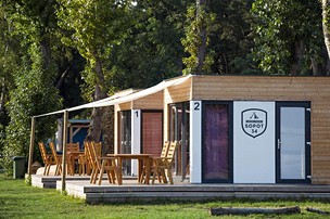 Středisko nabízí ubytování v obytných přívěsech, rekreačních domcích nebo ve vlastních stanech. Hosté zde oceňují vysokou úroveň služeb, ideální polohu u moře, pestré možnosti trávení volného času i příjemné balneologické centrum.UbytováníSopot 34 nabízí ubytování v moderních prakticky zařízených dřevěných domcích pro rodiny (4 - 5 osob) s možností přistýlky. V každém domku najdete dvě ložnice pro dvě osoby. V jedné ložnici jsou dvě samostatné postele ( 70x200 nebo 80x200cm) a ve druhé je patrová postel (70x200 nebo 80x200). Součástí výbavy jsou polštáře, přikrývky a ložní prádlo. Ručníky, osušky je třeba si vzít vlastní. Dále se v bungalovu nachází obývací pokoj s rozkládací pohovkou (140x200 nebo 150x200cm - slouží jako přistýlka) s kuchyňským koutem a televizí, koupelna se sprchovacím koutem, WC a umývadlem. Před domkem se nachází terasa se zahradním nábytkem. Mezi kuchyňské vybavení patří elektrické hořáky, lednička, dřez, rychlovarná konvice, hrnce, pánve, talíře a příbory. Hosté mají zdarma k dispozici internetové připojení WIFI. Přistýlka pro 5. nebo 6. osobu je formou společného spaní na rozkládací pohovce v obývací části. Tím, že se jedná o sdílení rozkládací sedačky, doporučujeme v kombinaci max. dospělé osoby a dítěte. Ručníky ani utěrky nejsou součástí vybavení.