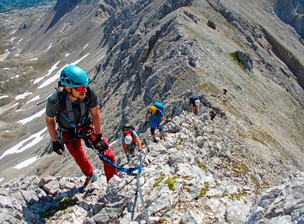 Zajištěná hřebenová cesta Ramsauer Klettersteig (B/C) na nejvyšší vrchol Scheichenspitze (2664 m). Poté těžší zajištěná cesta Jubiläums-Klettersteig (C/D) na divoce skalnatý Eselstein (2556 m). (9 hod, ↑1100 m, ↓1100 m)