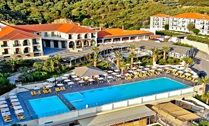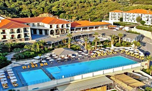 PolohaRozsáhlý hotelový komplex se nachází na malém kopci obklopeném krásnou zelení. Hotel se nachází asi 2,5 km od centra Ouranoupoli na poloostrově Athos. Ouranoupoli je posledním světským městem, které hraničí s autonomní republikou Hora Athos. Transfer z letiště do hotelu trvá přibližně 2 h.