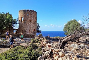 Pobřežní trasou E4 mezi Paleochora a Sougia s úžasnými výhledy na moře, kolem zříceniny antického města Lissos a Temple of Asclepios. (5 hod, ↑450 m, ↓450 m)