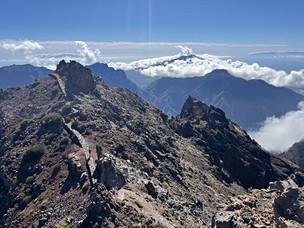 vyjedete autem (90min) kousek pod nejvyšší horu Roque de los Muchachos (2426 m) - k Pico de La Cruz, kde končil jeden z vašich předchozích výletů a budete pokračovat po hraně Caldery de Taburiente přes Pico de La Nieve (2232m) a Pico de La Sabina (2142), užijete si výhledy do caldery a na celý ostrov, nakonec sestoupíte na lesní parkoviště (­↑340m; ↓715m; ↔9,8km; 4h), kratší varianta bez Pico de La Sabine (↑­160m; ↓530m; ↔7,2km, 3h), prohlédnete si hlavní město ostrova Santa Cruz de la Palma a můžete také navštívit námořní muzeum „Museo Naval“ v centrum města