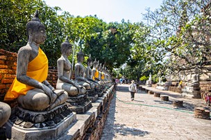 Brzy ráno z Bangkoku výlet do městečka Ayutthaya. Zažijeme kontrast neskutečného klidu a pohody v zahradách letního královského paláce Bang Pa-In Royal Palace. Návštěva chrámového komplexu Wat Mahathat (UNESCO) s ikonickou hlavou Buddhy zarostlou do kořenů stromů. Přesun nočním vlakem s lehátkovou úpravou či busem se sklopnými sedadly do oblasti Chiang Mai na severu Thajska.