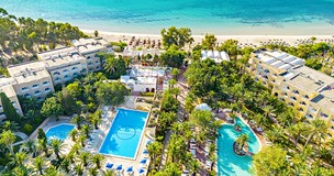 ****Hotel v udržované zahradě poskytuje kompletní servis pro vaši dovolenou. Samozřejmostí jsou krásné bazény, vlastní restaurace a bary a krásná pláž. Na své si přijdou milovníci golfu – 2 golfová hřiště jsou na dosah.