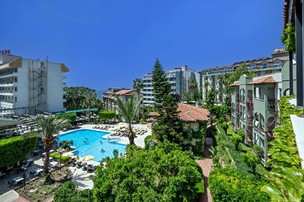 34 km od Side, 32 km od Alanye a 96 km od letiště, od pláže Justinino je hotel oddělen pouze udržovanou vzrostlou zahradou.