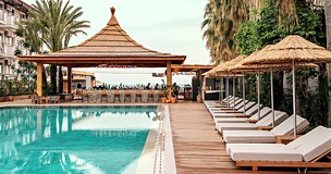 ****Písčitou pláž s lehátky a slunečníky, vnitřní i vícero venkovních bazénů, diskotéku, fitness a wellness centrum, několik restaurací a barů, polopenzi či All Inclusive nabízí tento čtyřhvězdičkový hotel, stojící pouhých několik minut chůze od centra města Alanya.