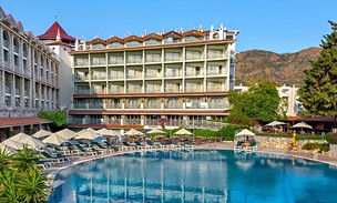 PolohaKvalitní hotel v udržované zahradě, cca 1 km od vesnice Icmeler s mnoha obchody, kavárnami a hospůdkami. Cca 8 km do zábavního centra Marmarisu, cca 105 km od letiště Dalaman. Přímo u hotelu je zastávka místního minibusu (cca 100 m). Hotel je určen výhradně pro osoby starší 16 let.PlážPřímo u hotelu (přes promenádu) se nachází písčito-oblázková pláž oceněná Modrou vlajkou. Lehátka, slunečníky a osušky jsou k dispozici zdarma..K dispozici pro hostyHodinová recepce, lobby, hlavní restaurace, restaurace a la carte s čínskou kuchyní za příplatek cca 10 EUR/osoba, nutná rezervace. Tři bary včetně jednoho s občerstvením, bazén cca 600 m2, lehátka, slunečníky a osušky zdarma. Za příplatek: půjčovna kol a aut, prádelna, lékař, fotograf, minimarket.InternetV lobby je k dispozici bezplatné Wi-Fi připojení k internetu.StravaAll inclusive: snídaně (07:30-10:00), pozdní snídaně (10:00-10:30), oběd (12:30-14:00), večeře (19:00-21:30) formou bufetu. Dále: občerstvení během dne (12:00-16:00), zmrzlina (15:00-16:00), coffee break (16:30-17:30), místní nealkoholické a alkoholické nápoje od 10:00-01:00, noční občerstvení (24:00-001:00). Ostatní nealkoholické a alkoholické nápoje za příplatek.Sportovní a animační programV hotelu probíhají denní a večerní animace. Ranní gymnastika, aqua aerobik, kulečník, stolní tenis, šipky, kulečník, boccia, živá hudba, večerní show, karaoke, turecké lázně, sauna, vířivka. Za příplatek: masáže a procedury v lázeňském centru, vodní sporty na pláži.Webové stránkywww.marti.com.trMístní kategorie****Podle našeho názoruKrásně položený hotel s výhledem na záliv Icmeler a malebnou pláž. Blízkost centra s mnoha atrakcemi, obchody a bary a výhodná formule All Inclusive umožní strávit pestrou dovolenou. Hotel je určen pouze pro osoby starší 16 let - ideální pro páry a jednotlivce!